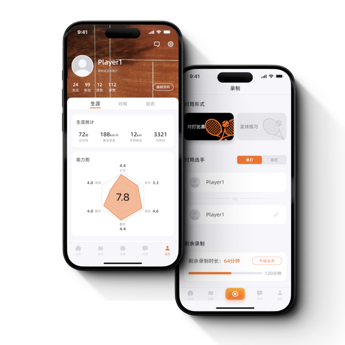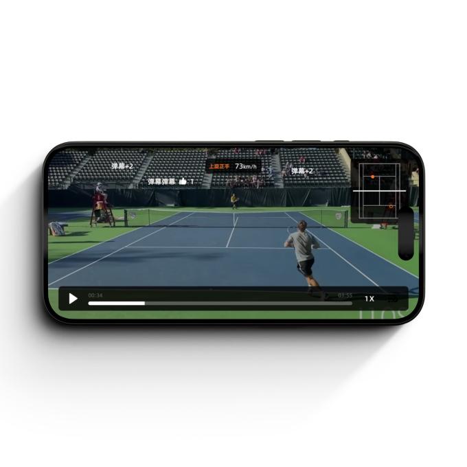 把手机架设在底线后面,开始拍摄,我们的AI会自动追踪。